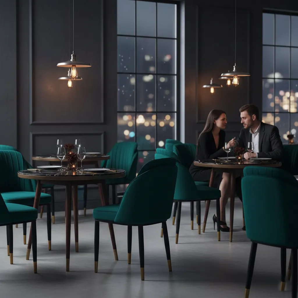 The first thing that captures the eye is the rich, deep emerald velvet upholstery. The fabric offers a tactile luxury that invites guests to linger over dessert. Featuring vertical channeling across the backrest, the design adds architectural depth and a rhythmic visual flow that complements both minimalist and maximalist interiors. The gently curved silhouette provides a semi-enclosed feel, offering the comfort of an armchair with the sleek profile required for a dining setting.