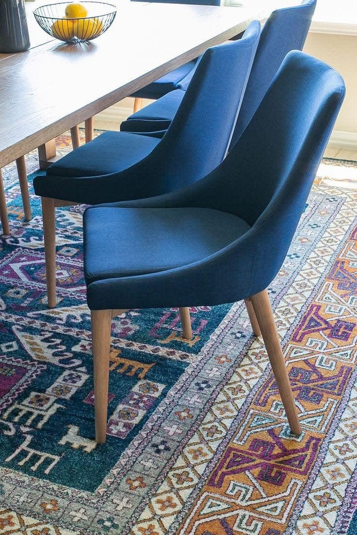 Sculpted Navy Fabric & Wooden Dining Chair – FF-C007